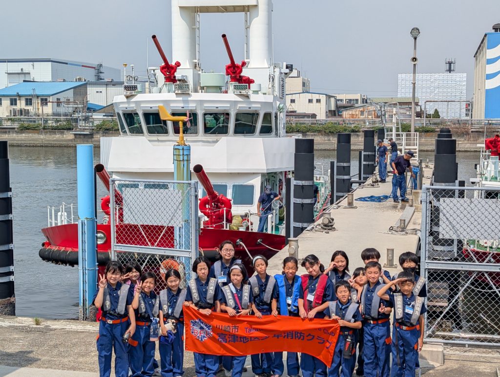 子どもたちの声が響いたのは、消防艇「かわさき」を目にした瞬間でした。間近で見る船の迫力に圧倒されながらも、船内の装備や説明を聞く姿は真剣そのもの。引率していた私も、思わず子どもたちと一緒になってワクワクしてしまいました。